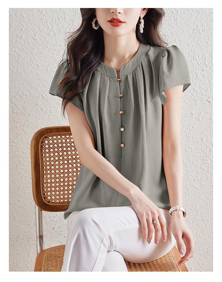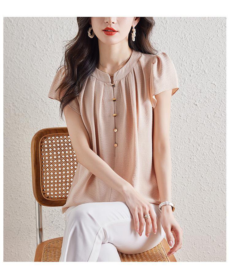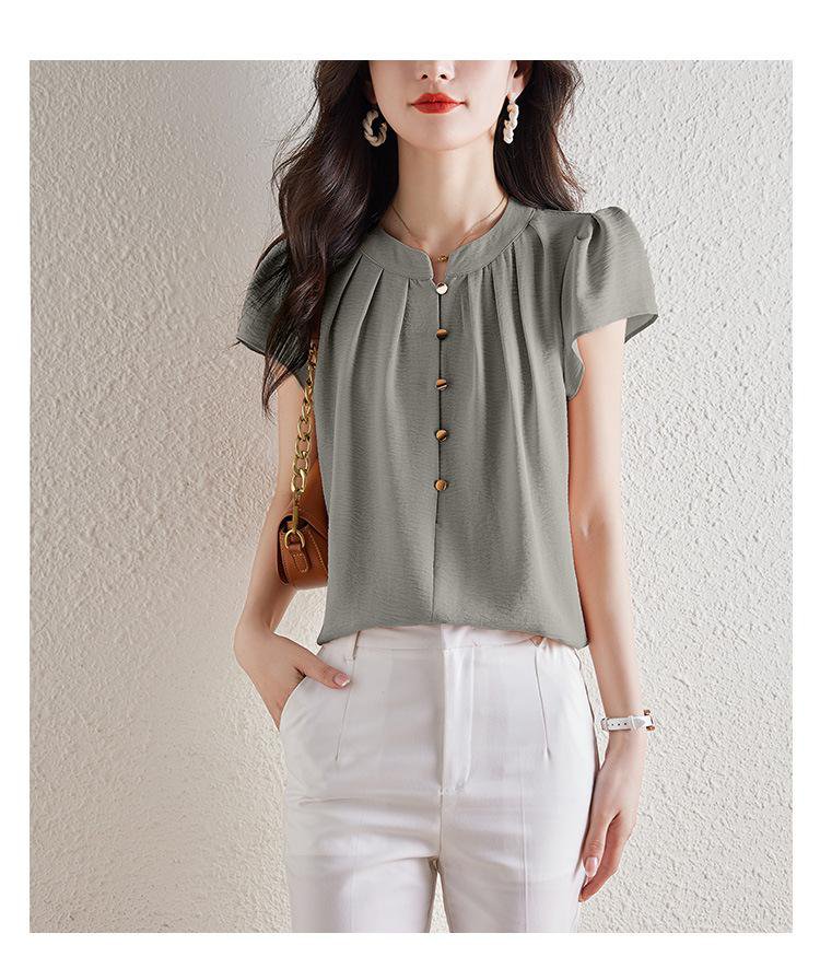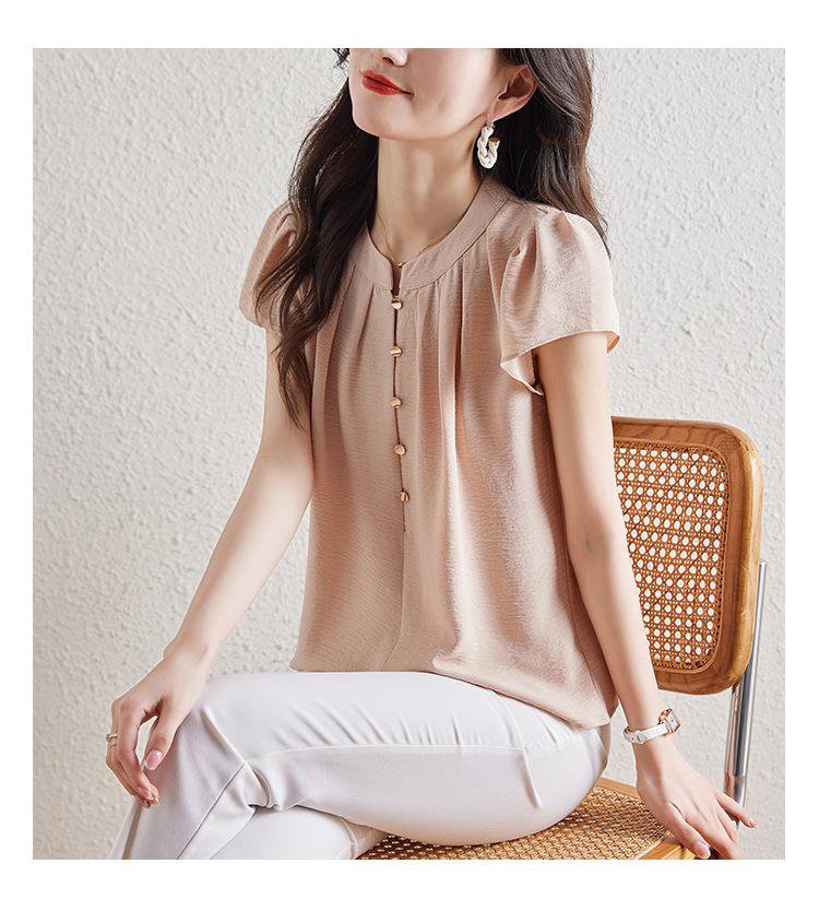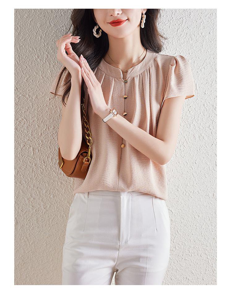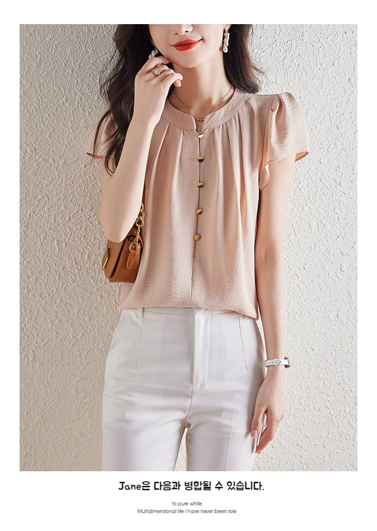 여성 통근 반팔 셔츠 슬림 라운드 반팔 셔츠 통근녀 반팔 셔츠